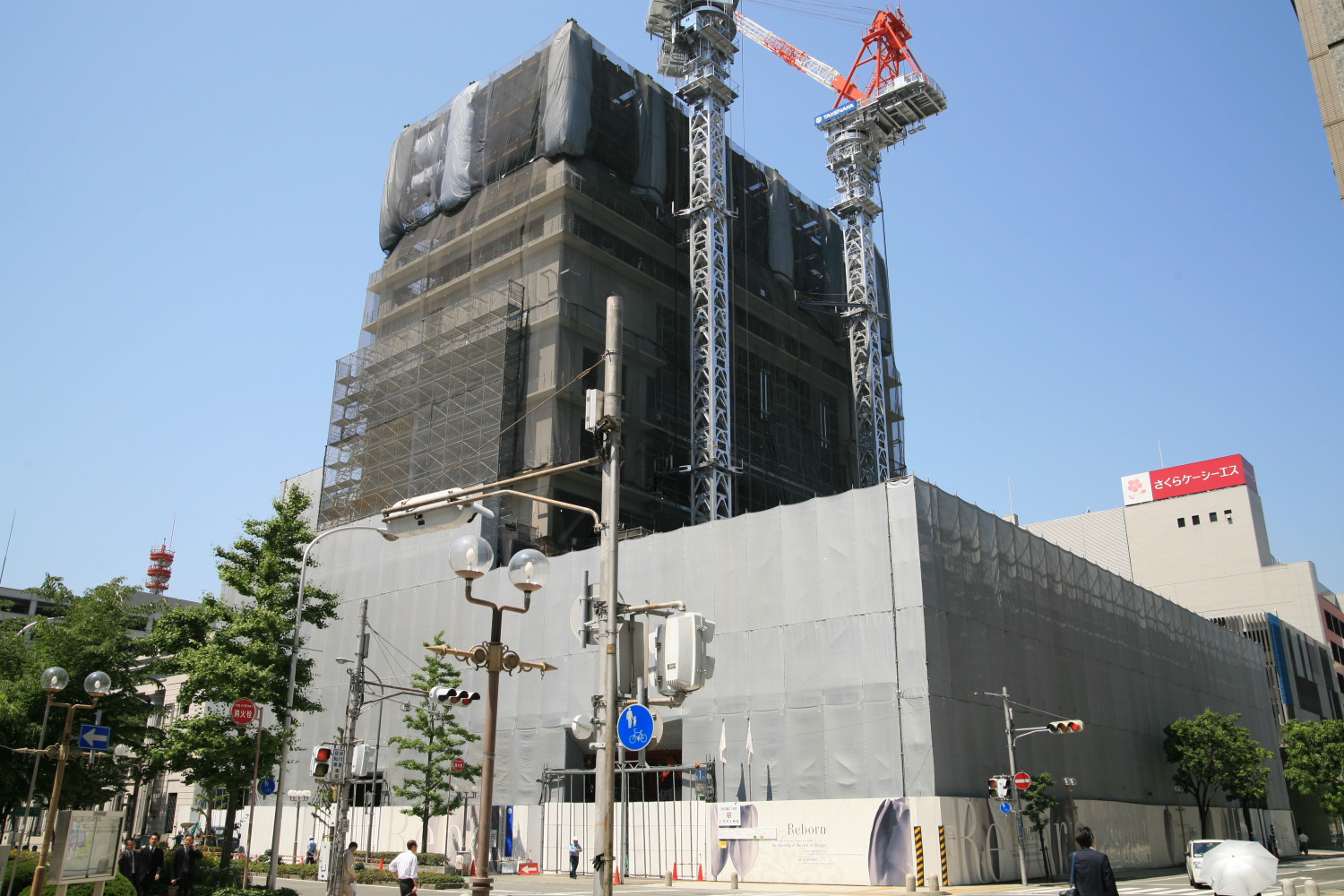 既存建物の地下部解体に長い時間を要していましたが、地上部の建設が進み始めると意外と急ピッチで工事が進んでいきました。現在は既に11-12階にまで達しています。