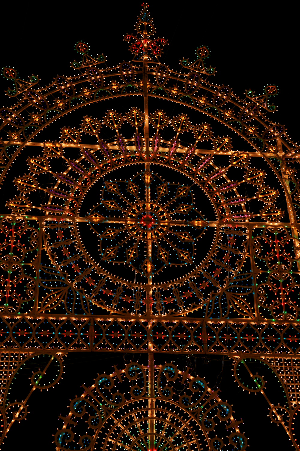 高さ20mのフロントーネから始まり、24基のガレリアが仲町通りを暖かい光で包み込みます。